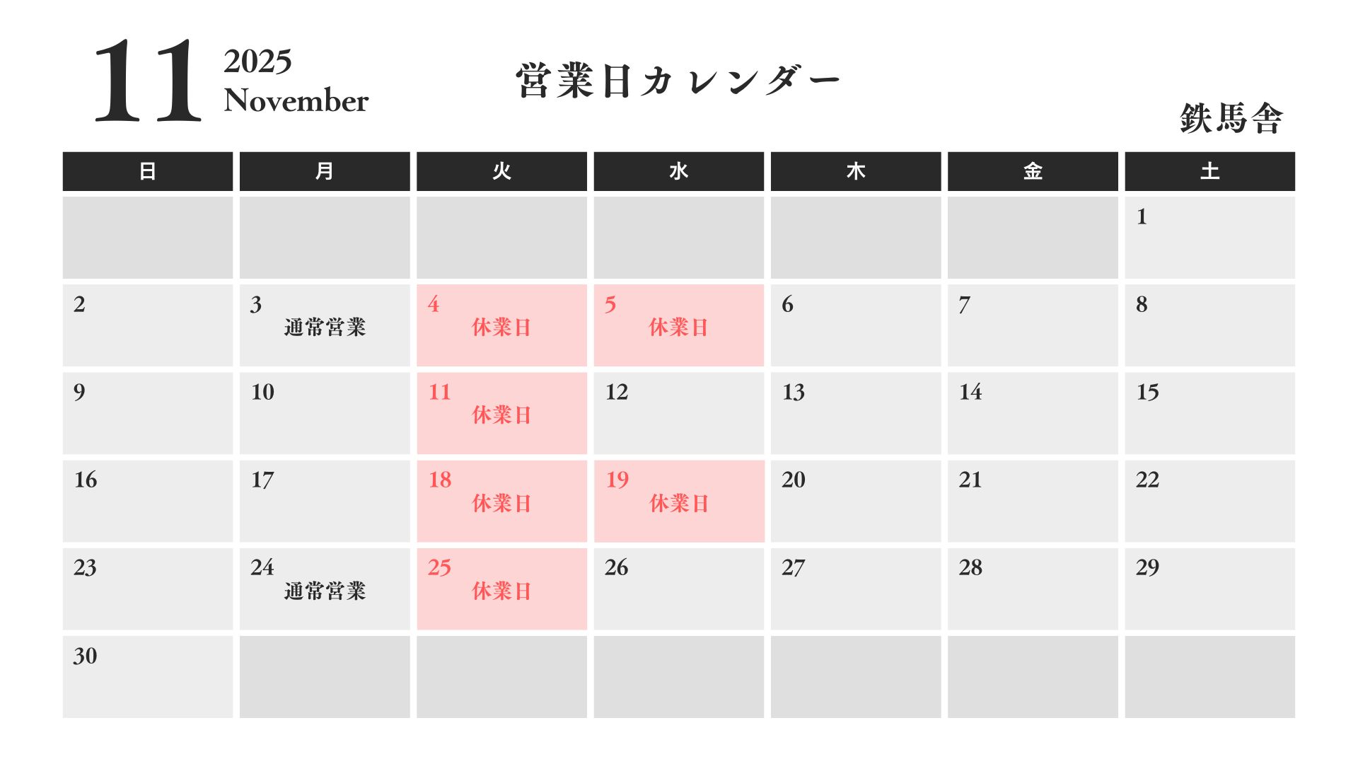 11月3日(祝)・11月24日(祝)は、通常通り営業いたします。